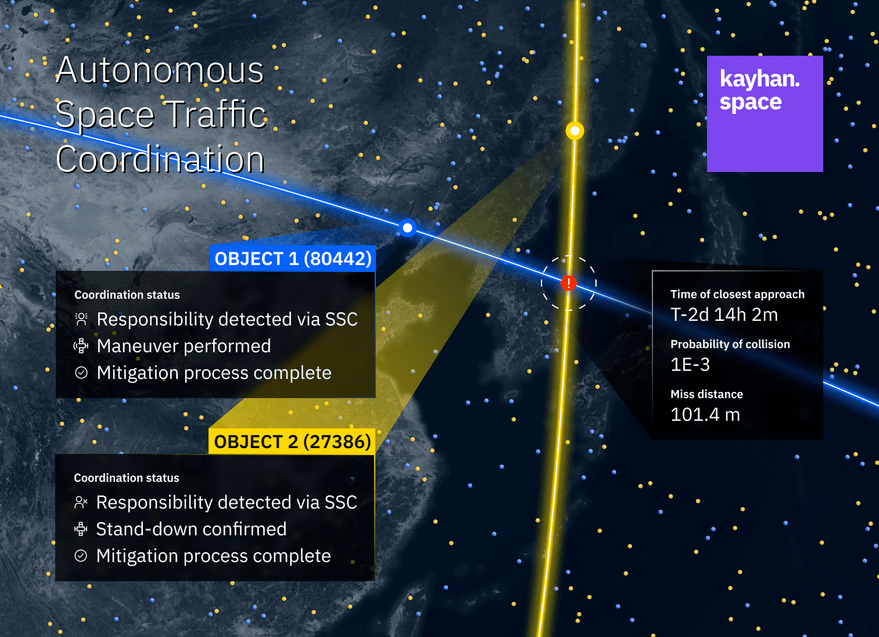 Once a possible collision is detected, satellite operators can share planned maneuvers through the Kayhan platform. Maneuvers also can be handled through the Kayhan platform on a machine-to-machine level.